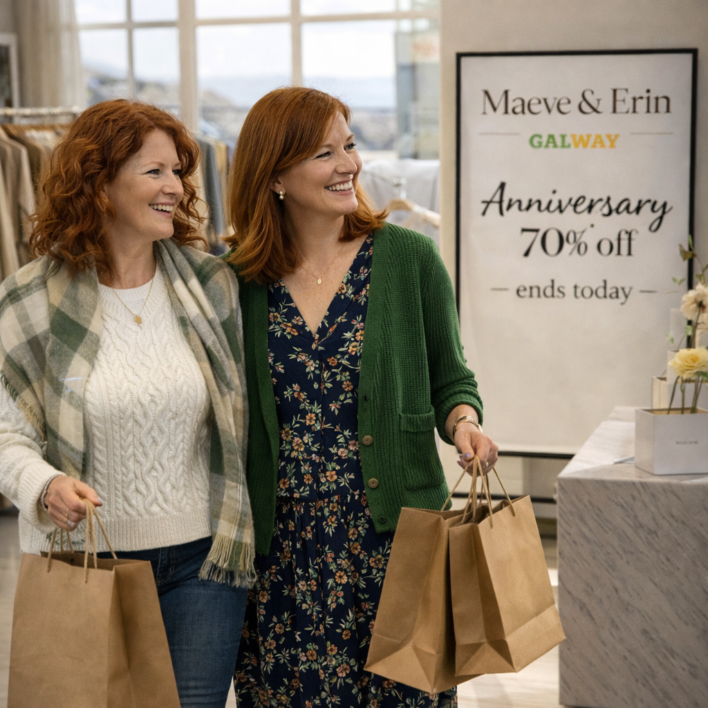 Ten years ago, Maeve & Erin started with a simple dream: to create clothing that feels like home — pieces that are comfortable, timeless, and effortlessly elegant. Inspired by everyday life in Galway — coastal winds, cozy cafés, and quiet moments by the sea — their vision slowly came to life.